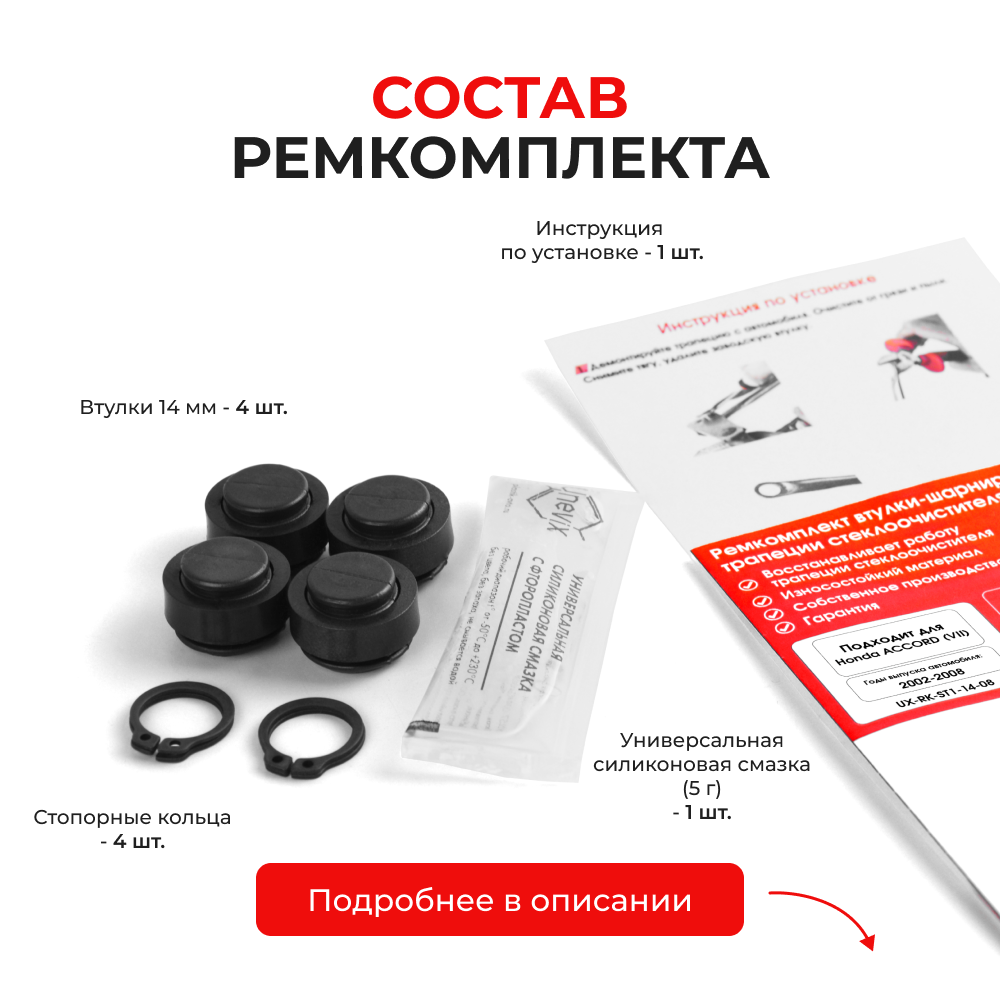При работе над данным комплектом, мы провели исследование на основании которого вывели 3 самых распространенных размера шаровых соединений в трапециях. И именно по этим размерам изготовили ремонтные втулки.