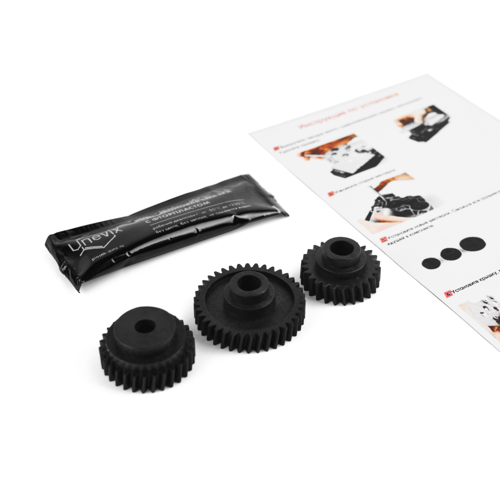 Графит, дисульфид молибдена и фторопласт в составе материала играют роль сухой смазки, благодаря чему шестерни служат дольше.