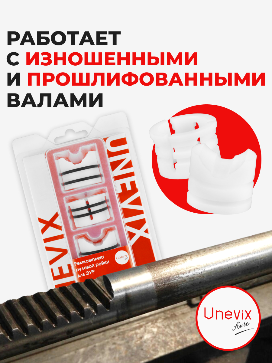 Если вы заметили посторонние звуки и вибрацию в рулевой рейке, замените изношенные втулки на новые из ремкомплекта рулевой рейки Unevix.