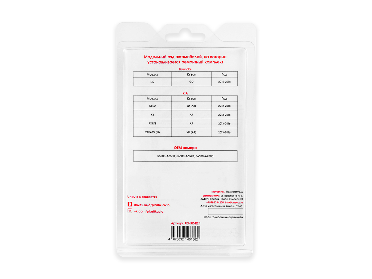 При выборе ремкомплекта проверьте соответствие года выпуска и модификации кузова автомобиля с таблицей.